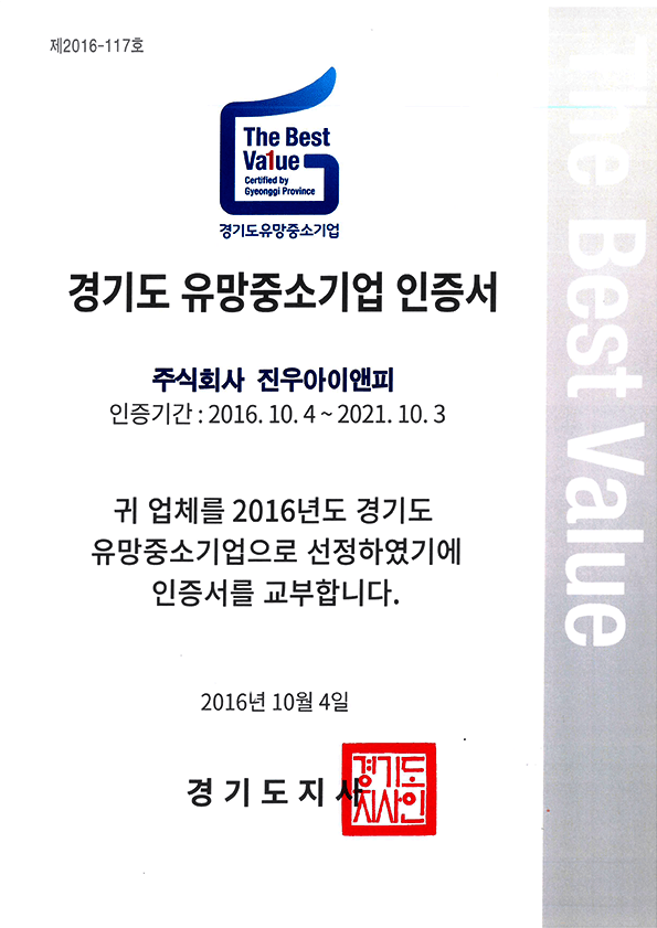 京畿有望中小企业认证书
