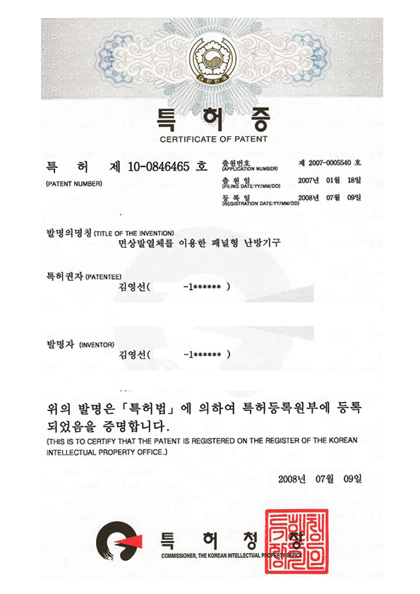 专利第10-0846465号