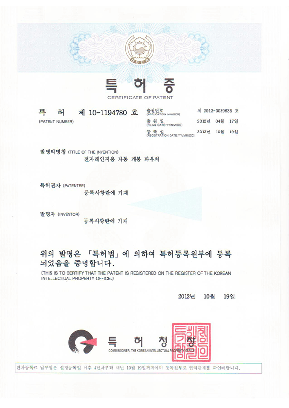 专利第10-1194780号